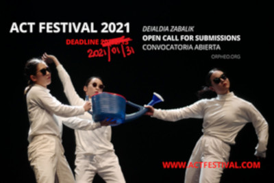 ACT 2021 Festival Internacional de Escena Emergente, que se celebrará en Bilbao y Barakaldo, amplía su convocatoria hasta el 31 de enero de 2021, para que artistas nacionales e internacionales puedan seguir enviando sus propuestas de danza, teatro, performance, circo, y demás lenguajes vinculados a las artes escénicas.