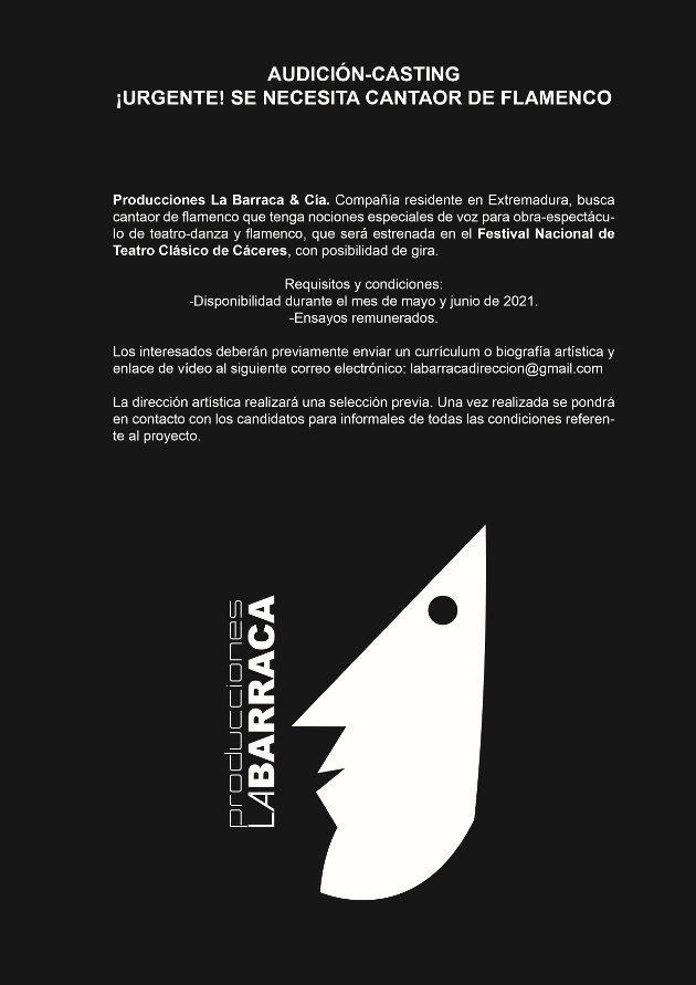 Usted está aquí: Inicio Convocatorias Audición-casting de una bailarina de danza española y flamenco y un cantaor