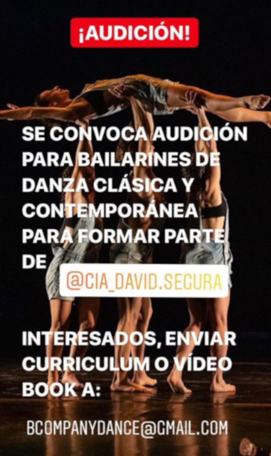 Se abre la convocatoria de selección para el elenco que formará parte de Beyond Dance. Cía David Segura para la temporada 2020/2021. La convocatoria va dirigida a bailarines con alto nivel en danza clásica y danza contemporánea. Los seleccionad@s por correo electrónico, pasarán a hacer una prueba presencial.