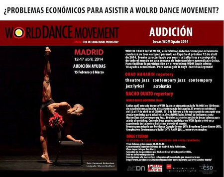 Madrid, desde 15/02/2014 hasta 08/03/2014Aún quedan muchas ciudades por recorrer pero ya son públicas las fechas en las que se celebrarán en Madrid las audiciones a ayudas económicas para la asistencia a World Dance Movement Spain 2014.