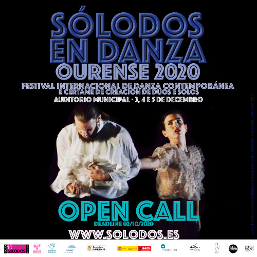 13. El Festival SóLODOS EN DANZA / OURENSE / 2020 se realizará del 3 al 5 de Diciembre en la ciudad de Ourense, Galicia, España. Un espacio para el intercambio profesional, clases magistrales, actuación para escolares y talleres. Es requisito indispensable para los semifinalistas participar en este Encuentro. Las actividades realizadas son creadas y pensadas exclusivamente para los participantes semifinalistas. Todos los artistas semifinalistas, deberán estar en Ourense desde el día 3 de Diciembre hasta el 5 de Diciembre.