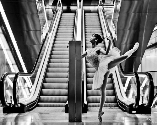 plasmar la elegancia de la danza en contraste con la vorágine de la gran